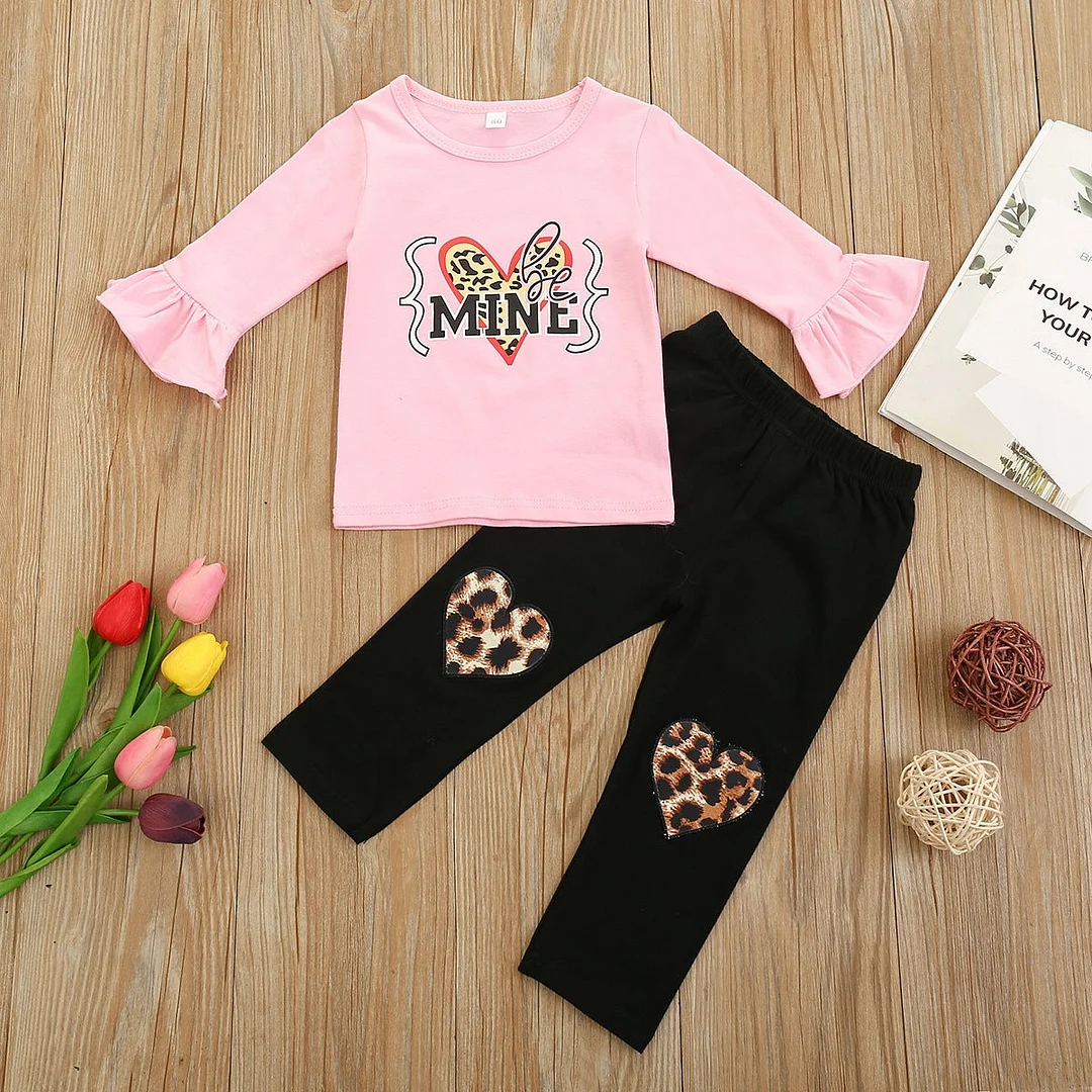Baby Kid Girl Suit Valentine's Day Letter-printed Leopard Love 2 Pcs Sets