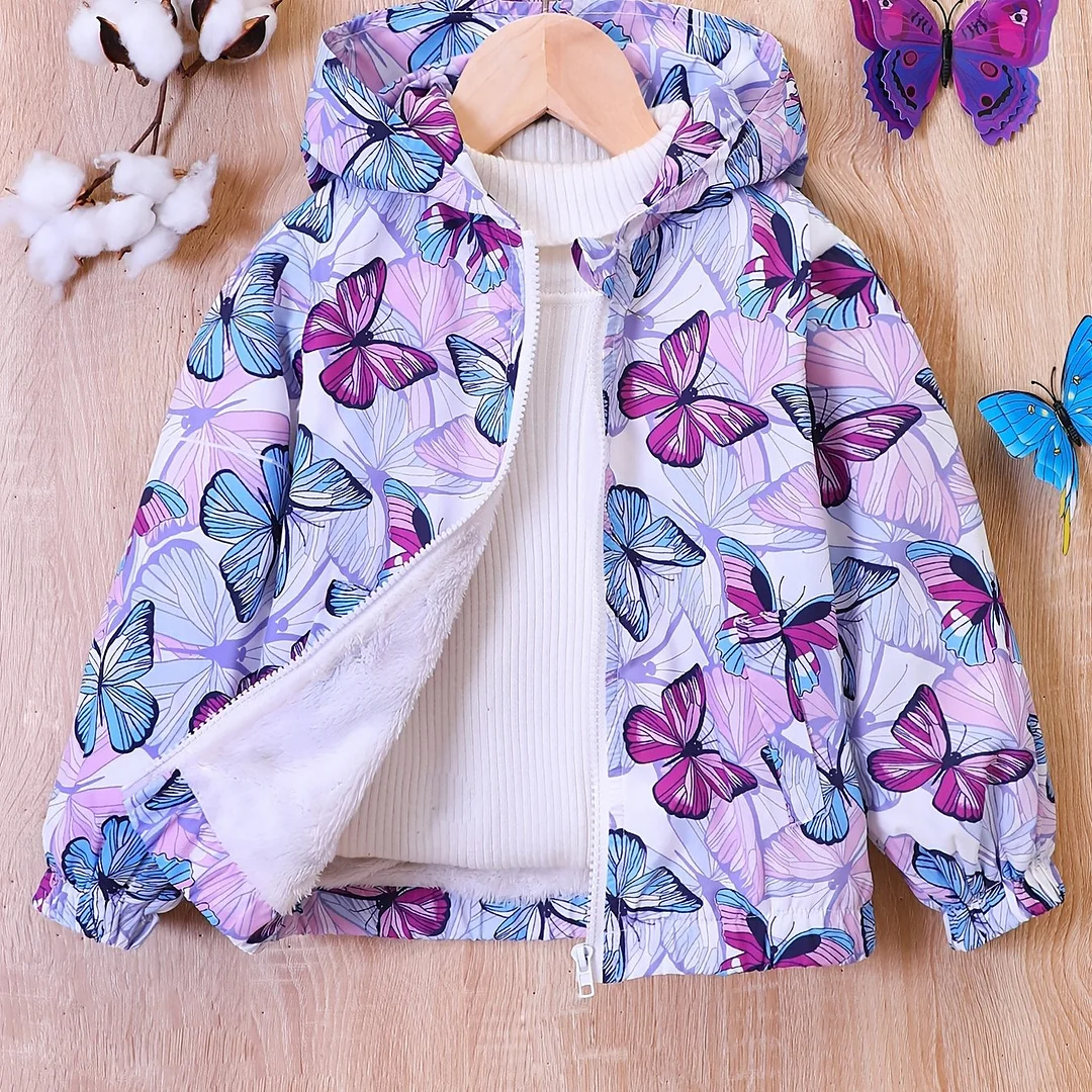 Kid Baby Girl Butterfly Print Hooded Zipper Coat Jacket