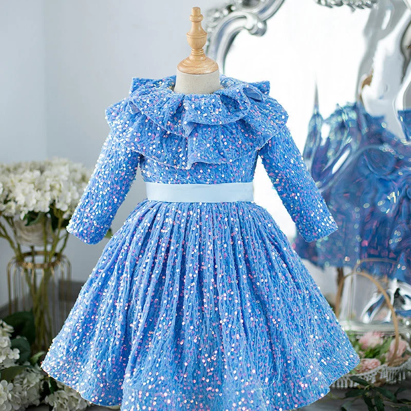 Kid Girl Blue Sequined Princess Birthday Catwalk Dresses
