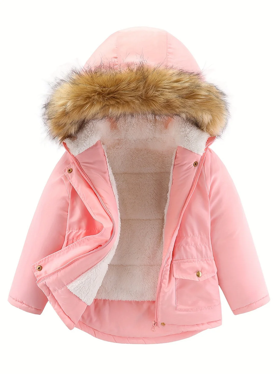 Kid Girls Warm Fuzzy Winter Parka Snow Suits Coat Outwear